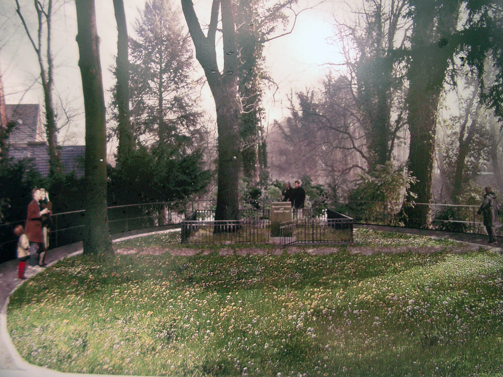So soll Kleists Grabstelle ab Mitte Oktober 2011 aussehen – das behauptet jedenfalls eine Fotomontage inkl. Grabbesucher und Kleinfamilie, die auf der Bautafel zu sehen ist.